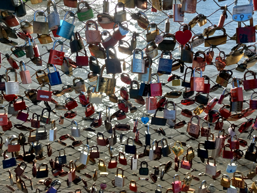 I was amazed how many padlocks there were. I had heard somewhere that couples lock the padlock as a symbol of their love and then throw the two keys into the river for safekeeping. Thank you, Dale!