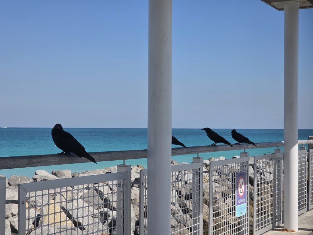 Just some images of the path along the beach. There is sand, shells and birds. There is even an umbrella.